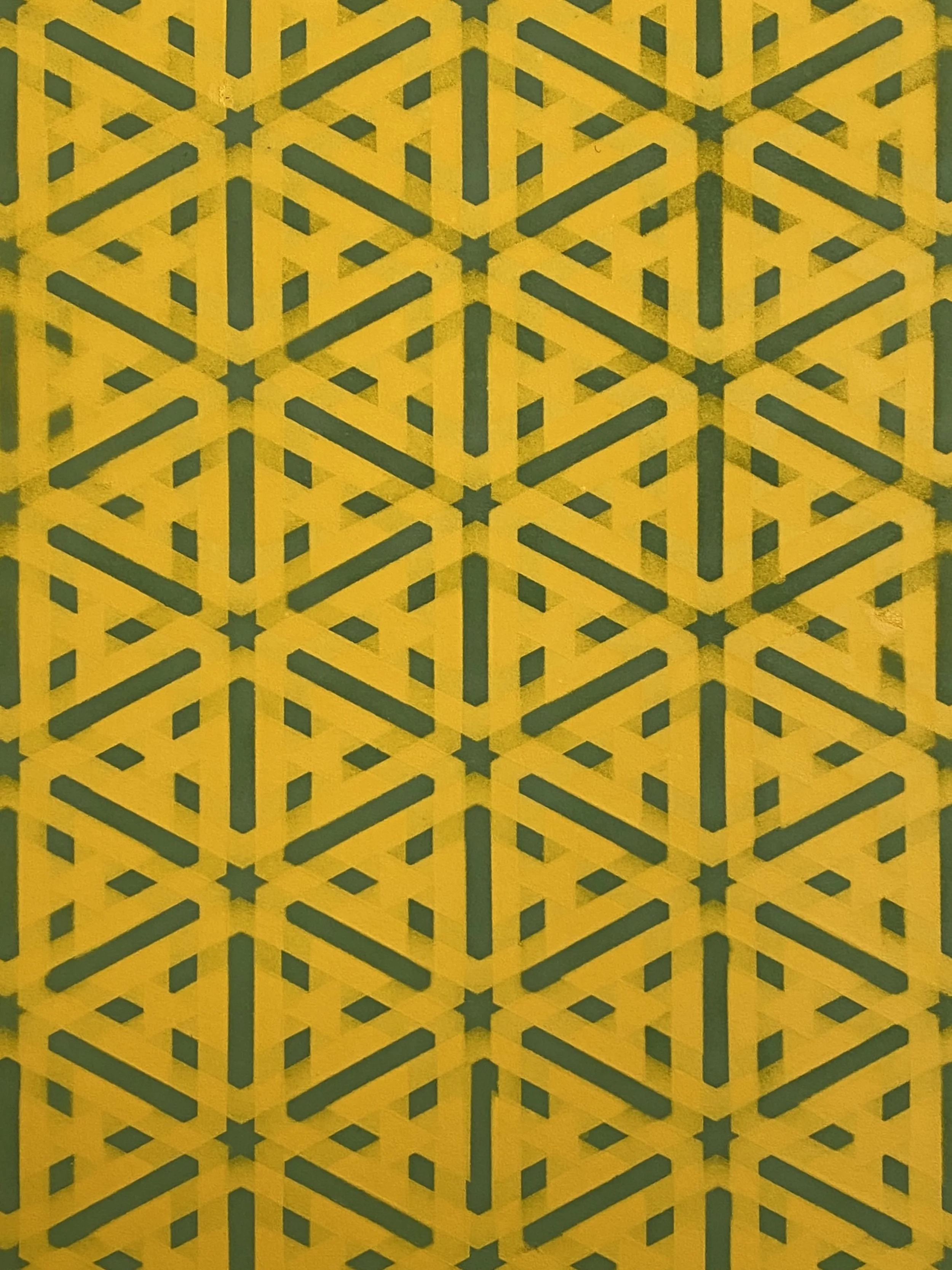 Created through the process of painting the primary Efficiency series. Using the backing and pieces as stencils, the paper catches the overspray and creates a new pattern through the overlapping of these stencils in the process of painting both sides.